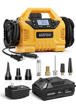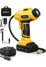 AstroAI Tire Inflator Air Compressor Cordless Car Tire Pump with 20V Rechargeable Li-ion Battery 150 PSI Portable Handheld Air Pump with 12 V Car Power Adapter for Cars Motorcycles LS40791(C1) Yellow