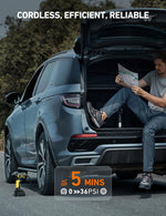 【Fast Inflation & Continuous Operation】: The lithium battery provides 20 V which delivers rapid inflation, it takes <5 mins to fully inflate a 195/65/R15 tire. The included 2000 mAh lithium battery provides 15 mins of continuous working time.