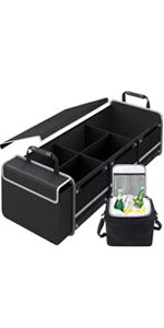[Large Capacity]: Our trunk organizer offers 8 ultra-large capacity storage bags with lids, perfect for carrying groceries, cleaning supplies, baby toys, and more. Say goodbye to a messy car and hello to a stress-free ride.